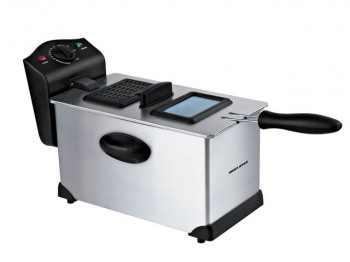 Voltaje 220V/ 50/60Hz Carcaza de inox Temperatura ajustable con luz indicador Tapa con visor y filtro Filtro para aceite Con manijas cool touch Manija de canasta removible Recipiente de aceite removible Olla de aceite inox